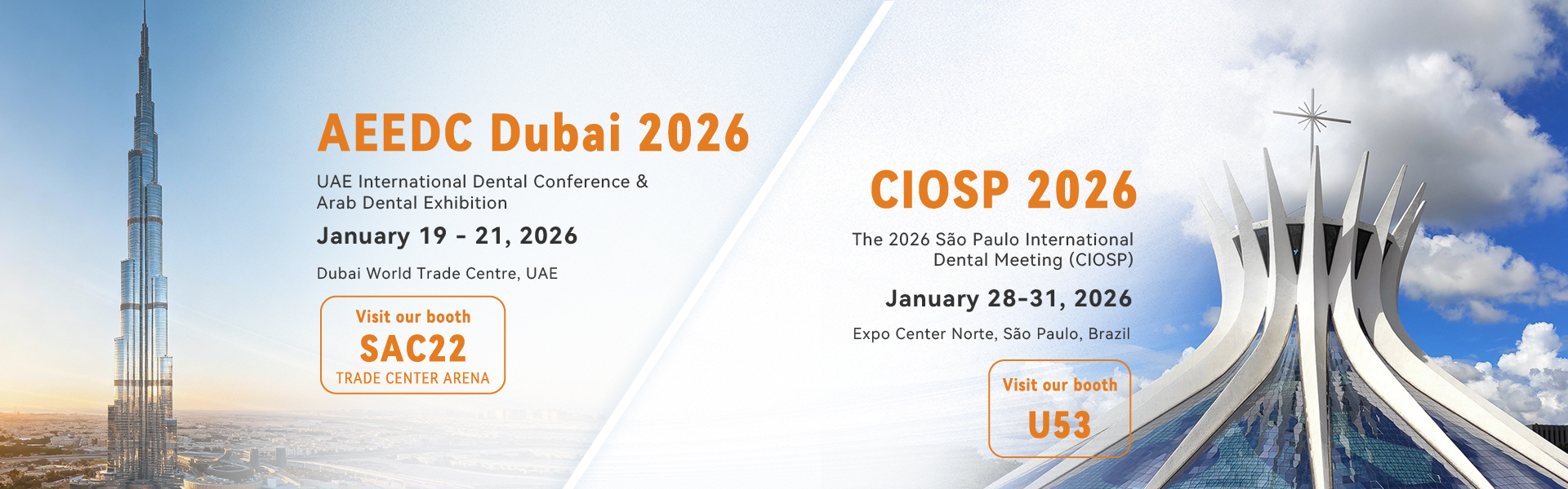 A Audental tem o prazer de anunciar sua participação em duas importantes exposições dentárias internacionais em janeiro de 2026 — AEEDC Dubai e CIOSP São Paulo.
